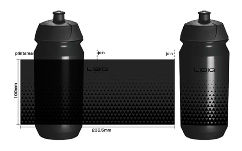 自転車専門店が新しく立ち上げたサイクルパーツブランド「LIBIQ(リビック)」のボトルデザイン。流行のグラデーションとジオメトリックデザインを組み合わせたパターンを作成。ボトル本体の半透明ブラックに、ロゴとパターンをリッチブラックでプリント。奥行きのある黒のワントーンデザインが高機能、高品質な雰囲気を漂わせています。